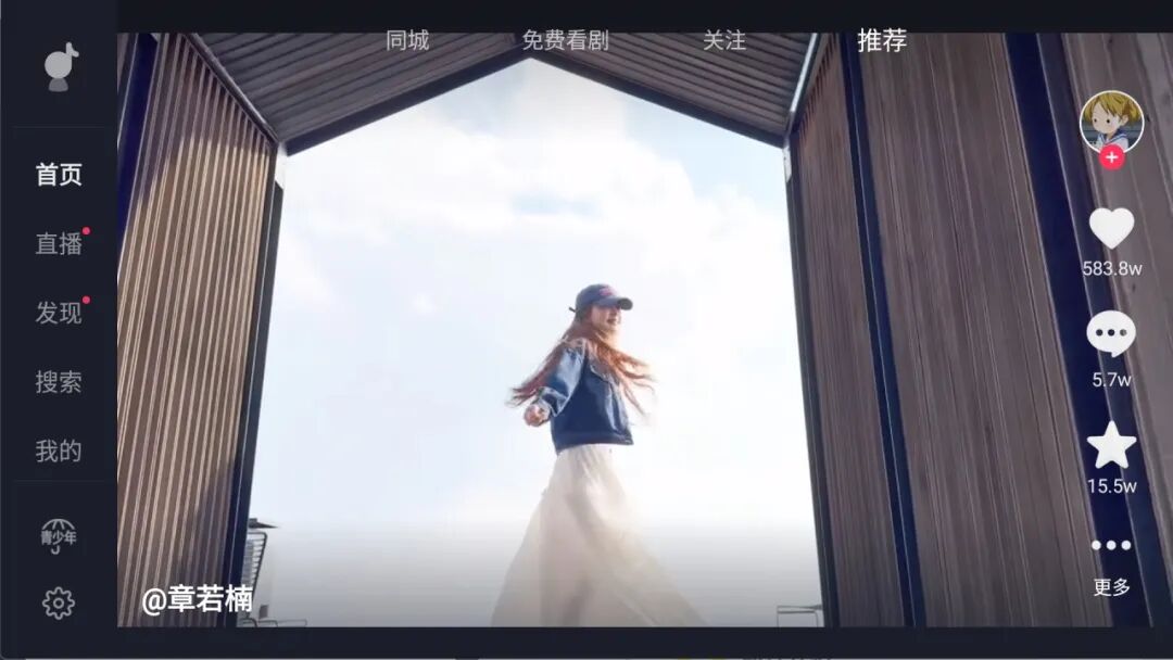 这款抖音TV端,不用登录就能刷视频,推荐、关注、免费看剧、同城、直播、发现、搜索这些功能一个不落,就是电视大屏上的“娱乐根据地”。