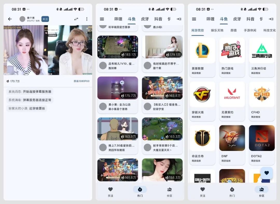 - 四平台聚合:省空间更省心:抖音+B站+斗鱼+虎牙全平台直播一站式覆盖!不用在四个APP里来回切换,电视/电视盒子装一个就够了,32.66M轻量设计,老电视也能流畅跑~