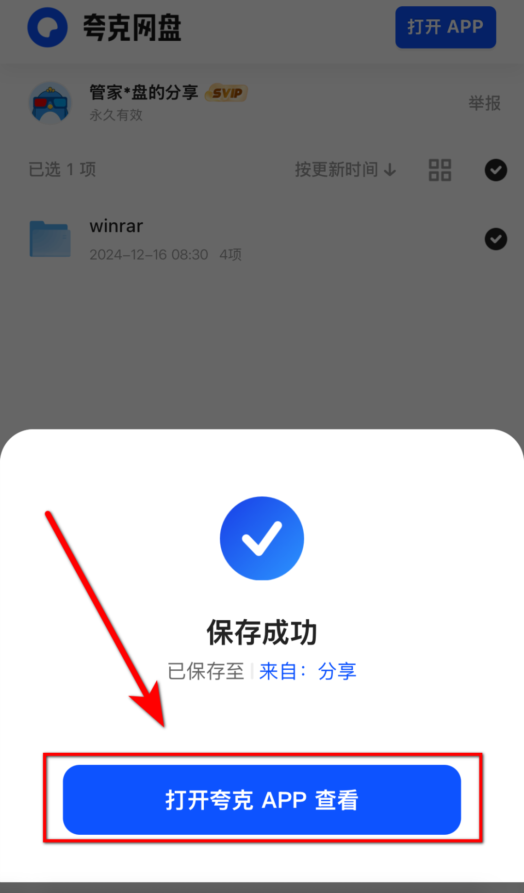 4.保存成功,点击【打开APP查看】,根据提示进行下载安装或者在手机应用商店搜索相关应用。